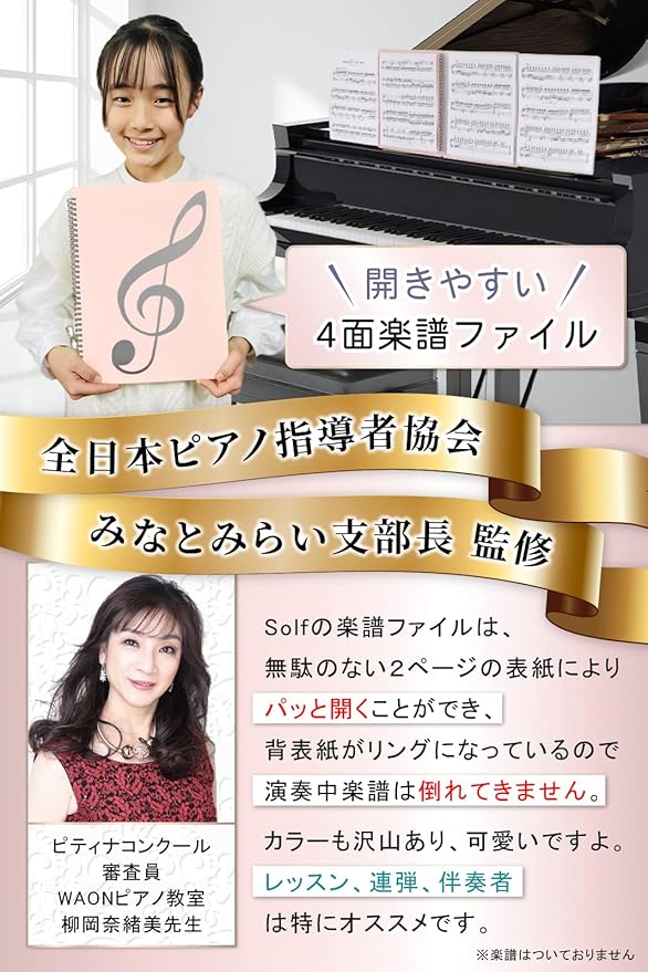 Solf 【ピティナ支部長監修】 楽譜ファイル 4面 書き込める A4 10枚/40面 ピアノ 伴奏 (ブラック)1冊