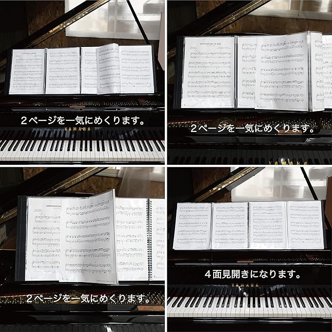 【表紙は4枚】表紙を4枚にすることで譜面台に載せて楽譜を見る時も両サイドの楽譜が後ろに倒れることがありません。