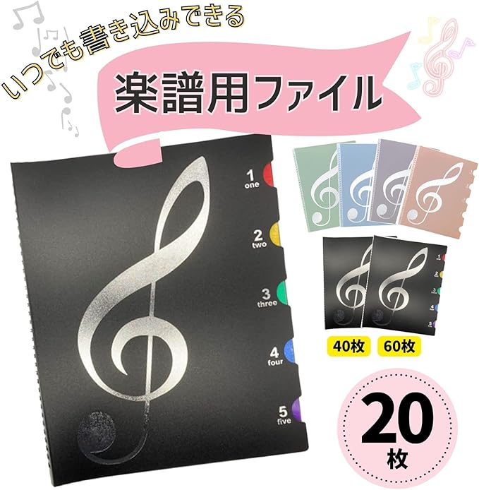 A4サイズの楽譜ファイルです。楽譜ホルダー20枚入りのため合計40枚の楽譜が収納可能です。