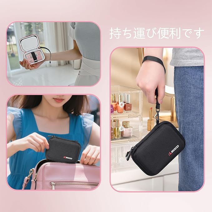 【イージーキャリ】コンパクトかつポータブルなハンドストラップ付きで、持ち運びやすく、そして、メッシュポケット付きなので、旅行や出張のためにお勧めします。