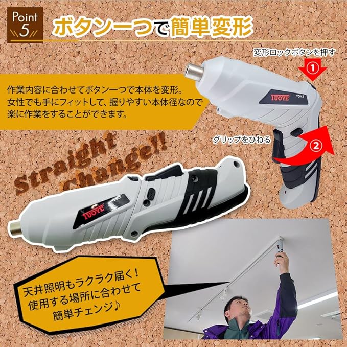 ◇軽量コンパクト! 女性でも手軽に使えるサイズ感。 購入した家具の組立にとても便利なアイテムです。 ◇左右回転切替が可能 ネジを締めるのも緩めるのも簡単に出来ます。