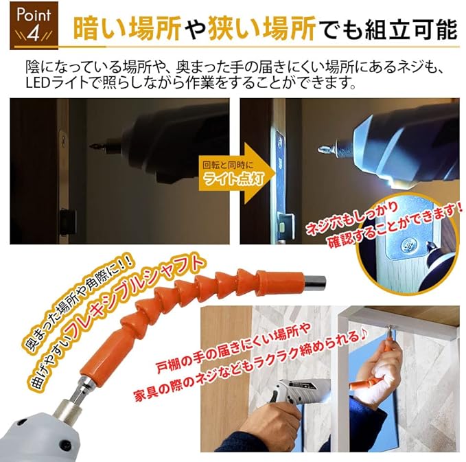 ◇LEDライト付き 暗い場所でもビット先が見えやすいようにLEDライトを搭載。