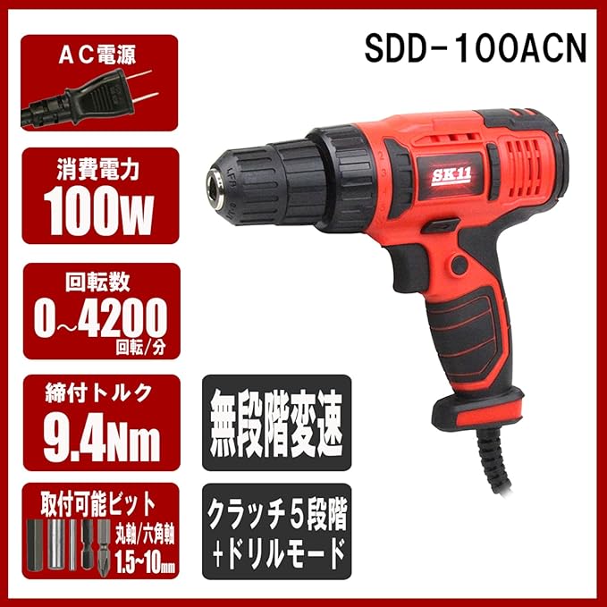 SK11(エスケー11) コード式ドリルドライバー SDD-100ACN 5段階クラッチ&ドリルモード付