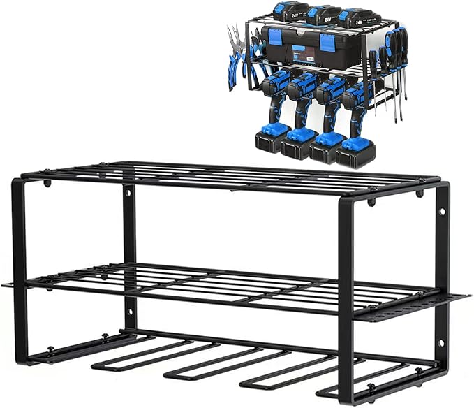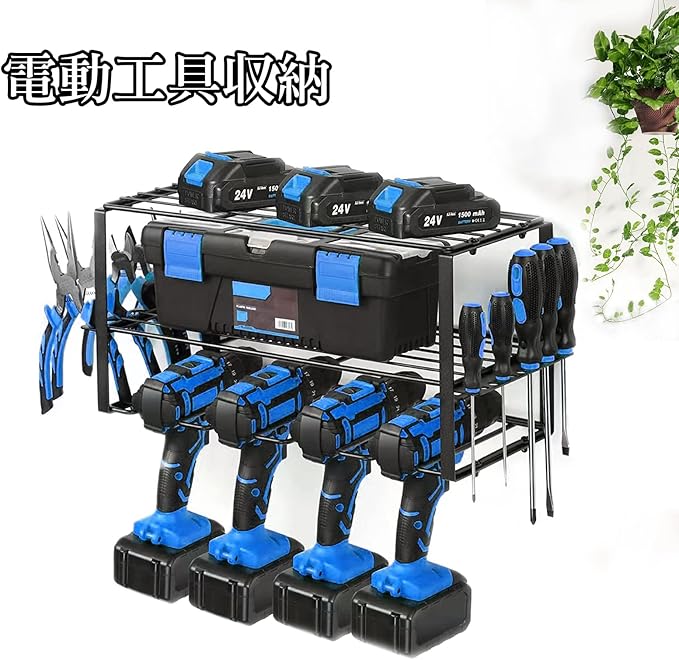 壁掛け式ツールキャビネット 工具オーガナイザー 電動ドリル・電動インパクト 収納ラック 収納ホルダー 3段 整理 整頓 高耐久 頑丈