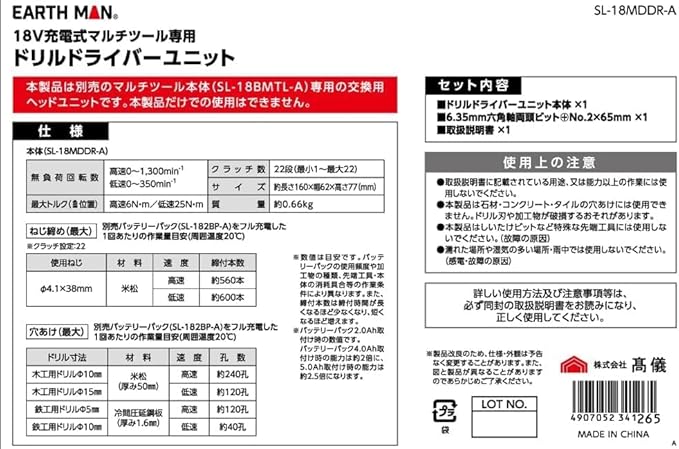 高儀 18V 充電式 マルチツール 専用 ドリルドライバー ユニット SL-18MDDR-A EARTH MAN SHARE LINK アタッチメント たかぎ