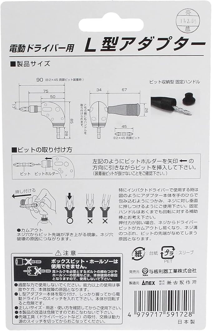 与板利器 YRK 電動ドライバー用 L型アダプター YRK-520 ブラック