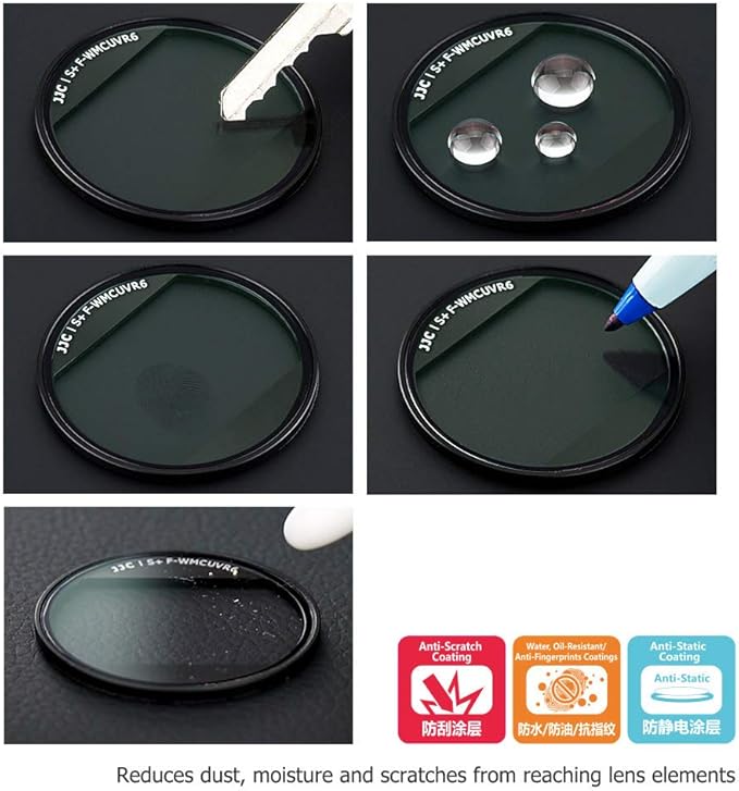 本UVフィルターは、19層のコーティングが施されており、平均光透過率は99.5%以上、反射率0.05%未満で、高い色忠実度を提供します。