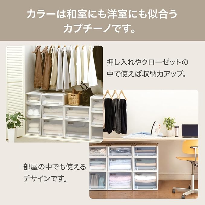天馬 収納ボックス フィッツケース クローゼット 幅39 奥行53 高さ23cm 収納ケース たわみにくい 衣装ケース 日本製 【色 カプチーノ】 【サイズ M-53】
