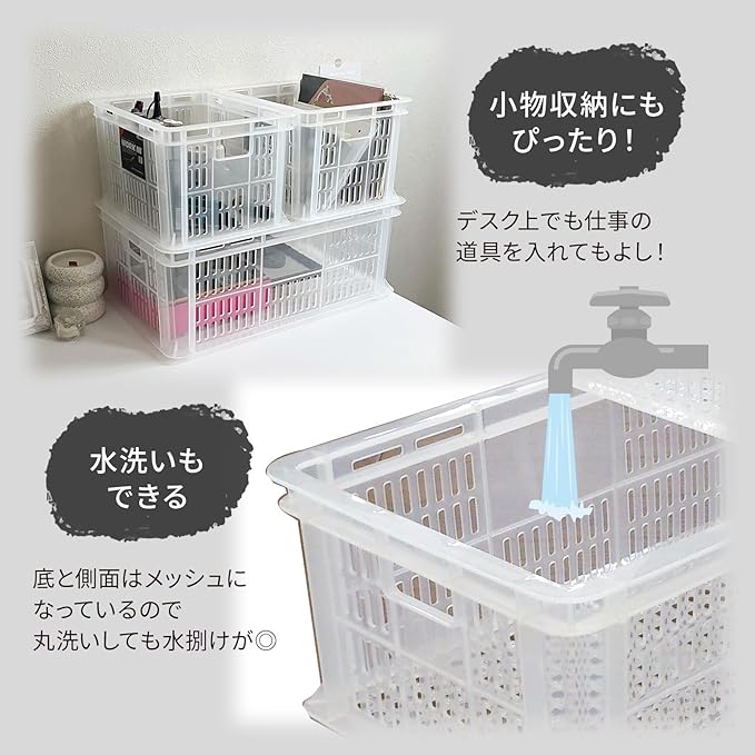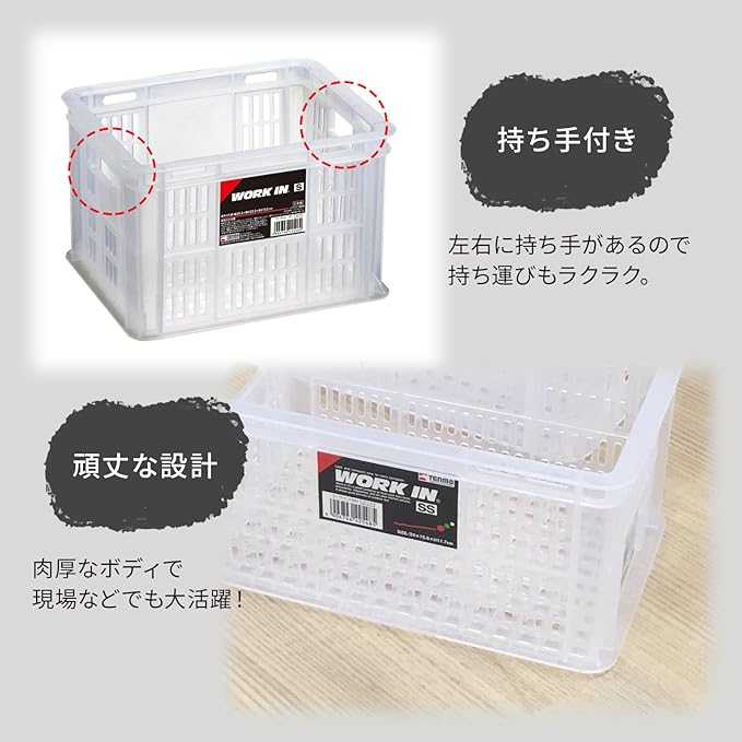 天馬(Tenma) 持ち手付きの丈夫なコンテナボックス 日本製 完成品 ワークイン Lサイズ 文房具や日用品など様々なものを収納できるカゴ A4サイズがぴったり入るバスケット プラスチック 【組立不要】 【色 クリア】 【サイズ L】 【幅43.2 奥行29.3 高さ25.6cm】