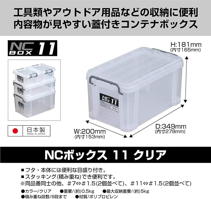 JEJアステージ(JEJ Astage) 収納ボックス NCボックス #11 [幅20 奥行35 高さ18cm] 日本製 ツールボックス NC BOX 積み重ね可能 防災用品 おもちゃ箱