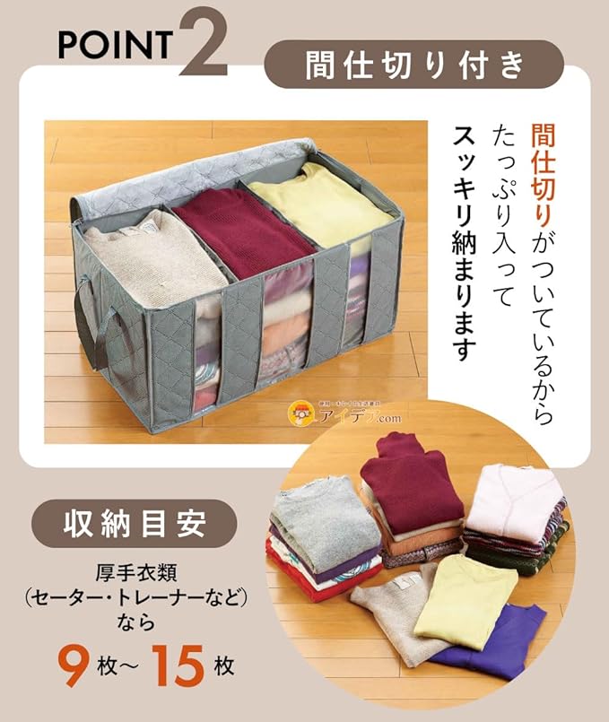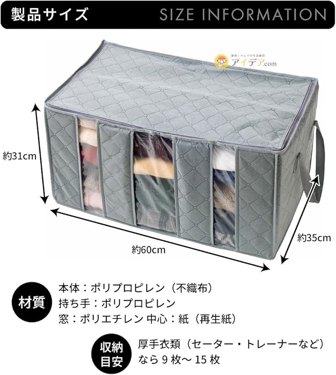 収納目安(約)/厚手衣類(セーター・トレーナー等)なら9~ 15枚
