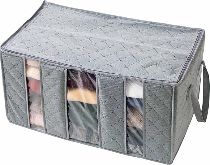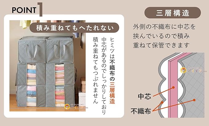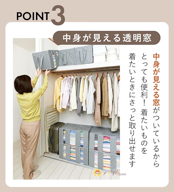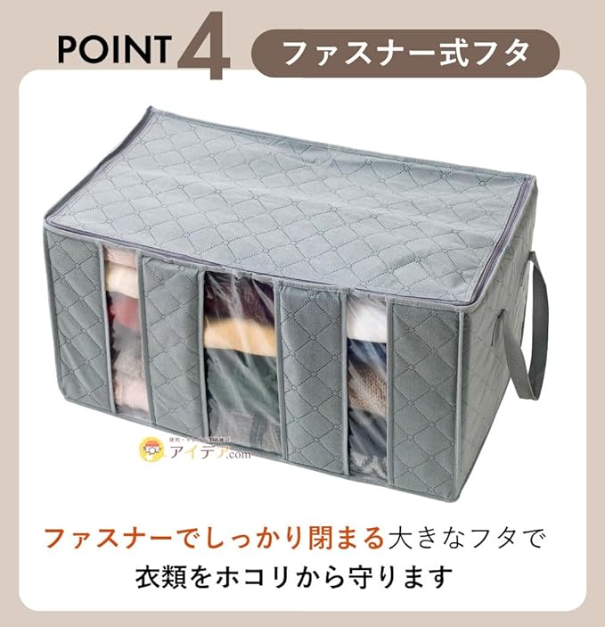 使用しないときは、コンパクトにたためます。収納に便利な軽量です。間仕切り付きでたっぷり入る竹炭整理袋。積み重ねて収納できるから、押入れがスッキリ!