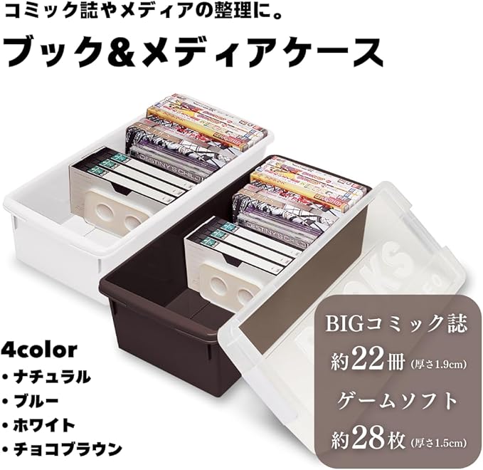伊勢藤(ISETO) 本収納ケース ブック&メディアケース ナチュラル 幅22.0 奥行48.5 高さ15.8cm 日本製 仕切り板 普通コミック誌約29冊収納 ゲームソフト約28枚収納 積み重ね可能 本 漫画 コミック I-329