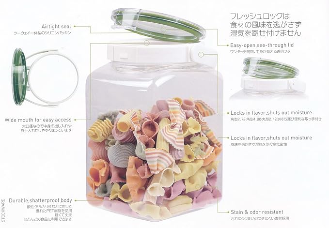 素材・材質:本体/PET(ポリエチレンテレフタレート)、中フタ/PP(ポリプロピレン)、上フタ/飽和ポリエステル樹脂、パッキン/シリコーンゴム