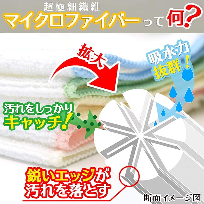 ●超極細繊維が油汚れやホコリなどをスッキリ落とし、水滴をすばやく拭き取ります。