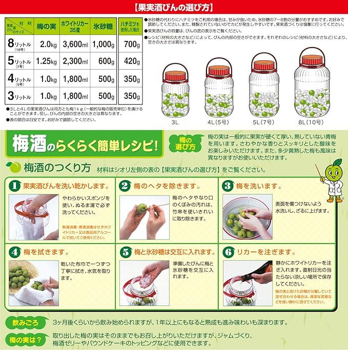 カラー:クリア | サイズ:2000ml | パターン(種類):1個入 商品紹介 Amazonより ●梅酒、果実酒、ジュース造りなどにぴったり! 便利な機能が使いやすさのポイント●コーナーの底面への衝撃を和らげるすぞ部の丸み●便利な注ぎ口が付いた内ブタつき●梅酒・梅ゼリー・梅サワーのつくり方がわかるシオリ入り●※長期保存果実酒びん認定マーク対象商品ではない