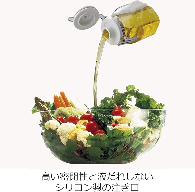 ●振って、かけて、保存する。ドレッシング作りから保存まで、これ一つでOKです。●キレのよい注ぎ口(シリコンゴム使用)液体調味料入れとして最適です。●ポンと開け閉めできるストッパー付きのキャップを採用。