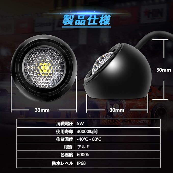 【IP68防水】悪天候でも、優れた防水、防塵、耐震や防腐食性能があるled補助灯です。ご心配なく使えても大丈夫です!ヾ(◍ ∇ ◍)ノ゙