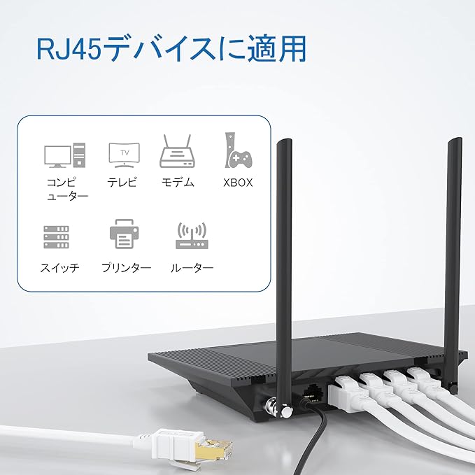 [通信安定&適用範囲]:金メッキシールドを採用、多重シールドで、26AWGの導体、最小ノイズと混信を保証して、安定で通信できます。ルーター、PC、ノートパソコン、モデム、スイッチ、WIFI、PS3、PS4、PS5、XBox、ハブ、NAS、TVbox、VoIP電話、POEなど全てのRJ45ポートデバイスと接続でき、信号劣化を抑え 、データを安定伝送を保証します。