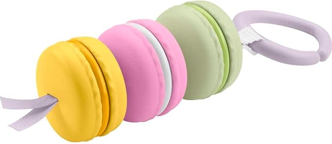 【知育玩具 ベビーカー】美味しそうなマカロンがラトルに! 振るとリンリン鳴ったり、マカロン同士がぶつかってカチャカチャ鳴り、お子さまの視覚・触覚・聴覚を刺激します。ベビーカーにも簡単に取り付けできるので、お出かけにも!