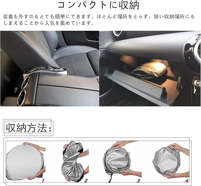 車内温度の上昇を防ぐ:太陽光をカットし、車内温度の上昇を抑えてくれるサンシェードです。 特に夏になると、車内の温度が50℃を超えることもあるので必須です。 サンシェードを取り付けた後、99%の紫外線を遮断して、太陽光直射により車内温度上昇を抑え、 車ハンドルやダッシュボードなどの内装劣化を防ぎます。