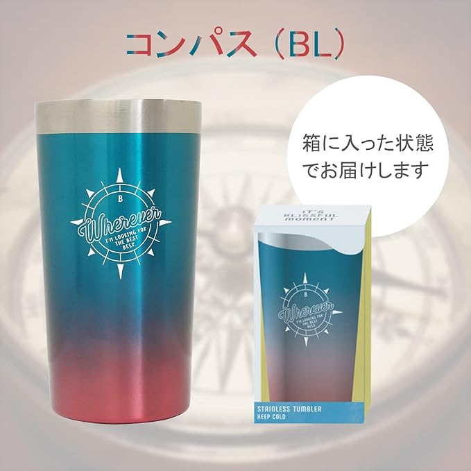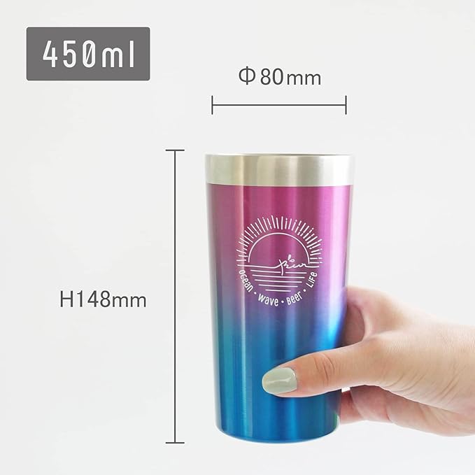 ステンレスタンブラー 450ml グラデーション 真空二重構造 箱入り ギフト (オーシャン(PK))