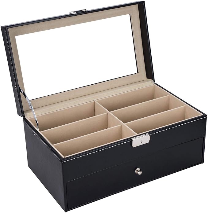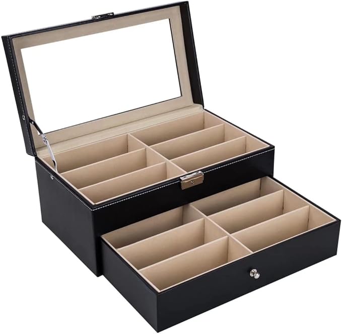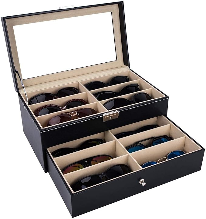 メガネケース サングラス ケース サングラス収納 メガネ 収納 メガネ 収納 ボックス 二段式 12本用 ブラック