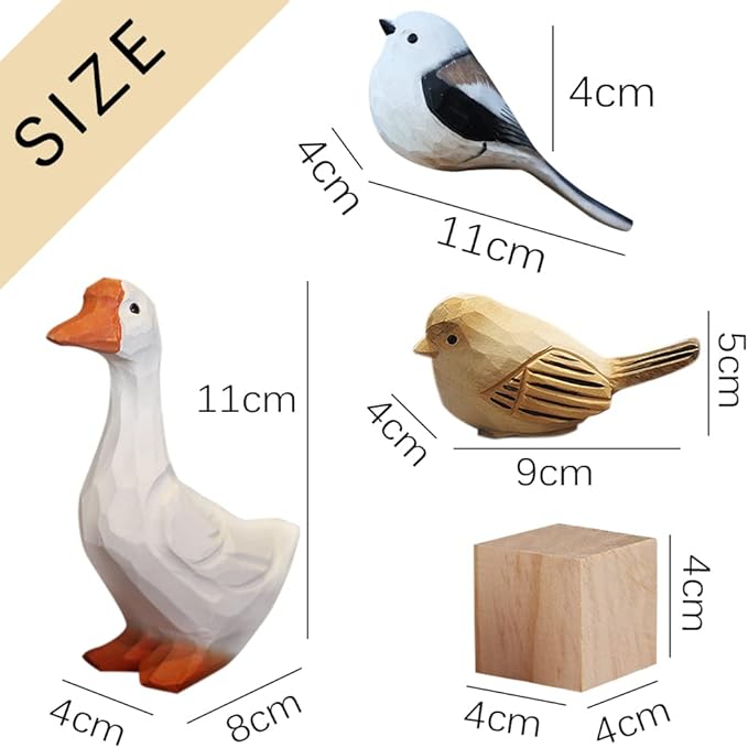 ●仕様:木彫り鳥型のオーナメント、●素材:しなのき。●プロセス:手彫り、研削と表面が着色する。●スタイル(含まれるもの):太った鳥・置く物、4*4*4cm松木ベース一つ付き。●サイズ:高さ約5cm、幅4cm、長さ8cm。