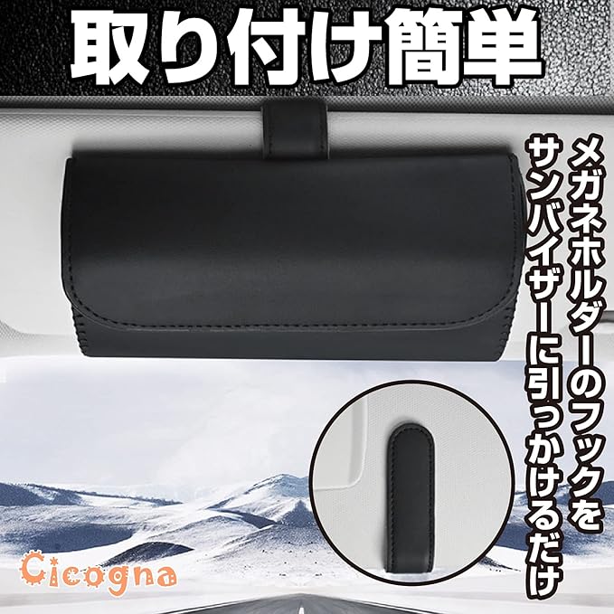 [Cicogna] 車用 メガネホルダー サングラス 眼鏡 収納 ケース PU 汎用 車載 サンバイザー 取付簡単 シンプル (ホワイト)
