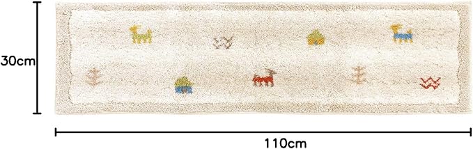 オカ(OKA) ギャベ コーナー吸着玄関マット 約30cm 110cm ベージュ (ギャベ柄 エスニック 洗える 吸着 ラグ カーペット 日本製 大判)