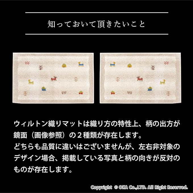 当商品はカーペットやラグの製法であるウィルトン織りで織り上げた上質で耐久性に優れたマットです。
