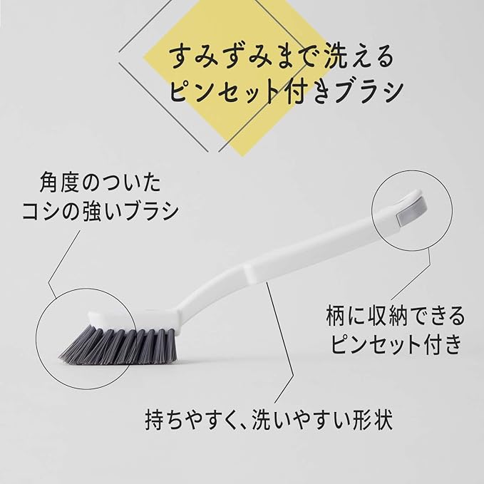 ●角度のついたコシの強いブラシで汚れをしっかり落とします。毛の色はグレーで汚れが目立ちにくく、生活空間にもなじみます。