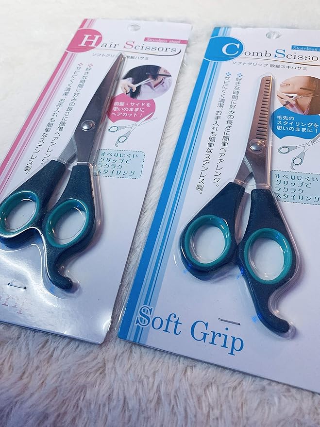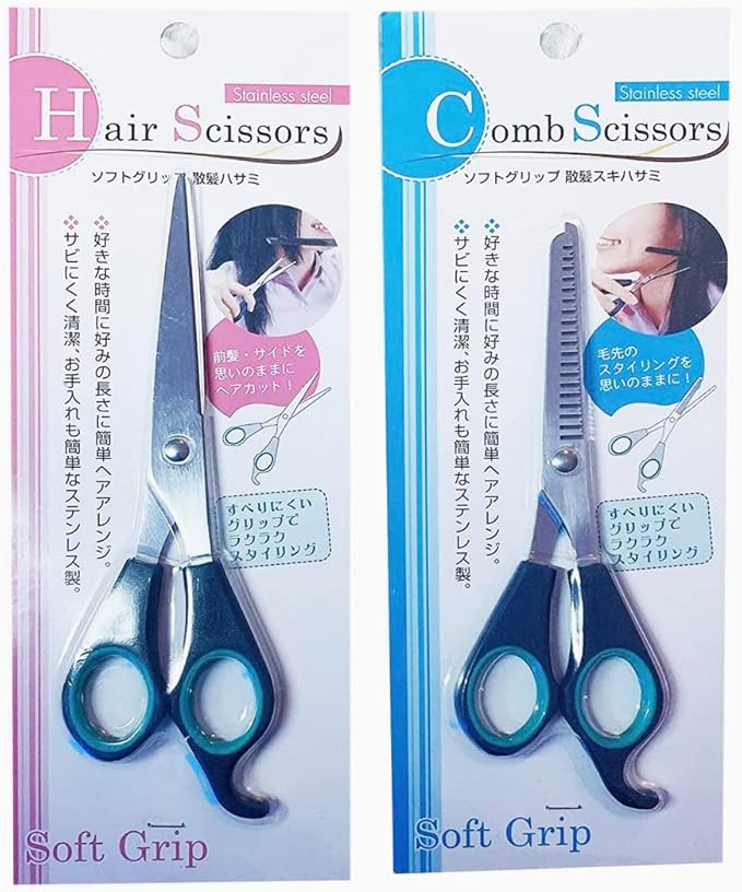 ソフトグリップ 散髪ハサミ 散髪スキバサミ 2点セット 自分でカットできる高性能ハサミ2点 ちょっとだけヘアカットしたいな!そんな時に便利な散髪専用バサミ 枝毛処理など、痛んだ髪のケアにもご利用可能ですよ。いつもありがとうございます。大感謝のプレゼント特典付きやってます!