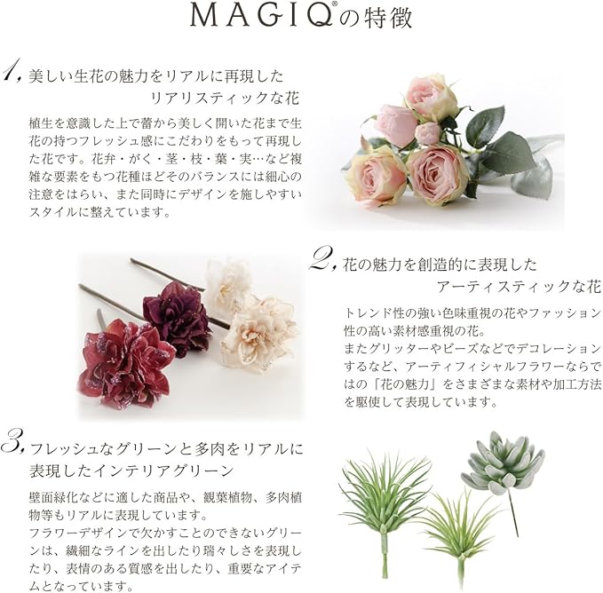 ・今までの造花にはないリアルな品質のアーティフィシャルフラワーをお届けします。