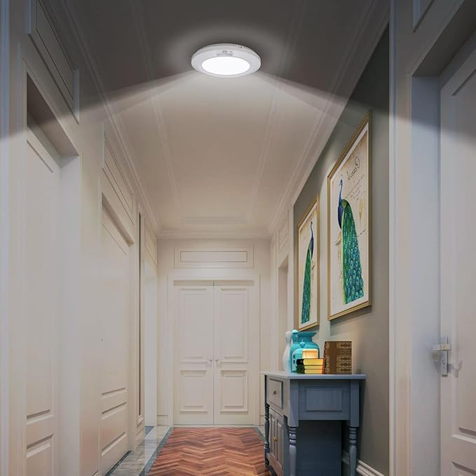 用途が広い:照明器具は電池給電(♥注:単三電池4本。 電池別売り)で、電線を配置する必要がないので、簡単に携帯したり取り付けたりすることができます。普段は夜灯、非常灯、戸棚灯、小型シーリングライトとして使用でき、廊下、階段、キッチン、寝室、トイレ、子供部屋、玄関、リビング、更衣室、洗面所、倉庫などで簡単に設置でき、夜間に活動する家族に便利と安全を提供しています。停電や災害が発生した場合には、緊急対応灯としても使用できますし、またこの灯具は親しい友人へのプレゼントとしても最適です。
