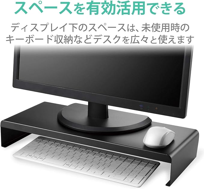 ディスプレイスタンドの下のスペースを有効活用してデスクの上を広く使うことができます。