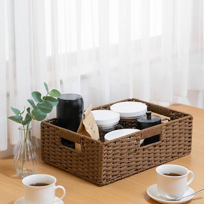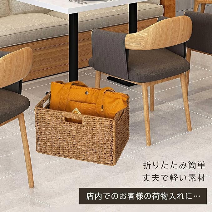 【手編み風ペーパー素材|軽量&丈夫】 天然の再生紙を丁寧に編み上げた手編み風デザイン。軽くて丈夫、通気性がよく湿気がこもりにくい素材なので、衣類・タオル・おもちゃ収納にも安心。型崩れしにくく、長く愛用できます。