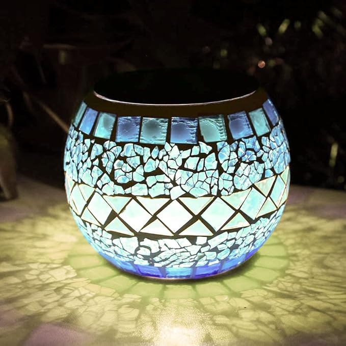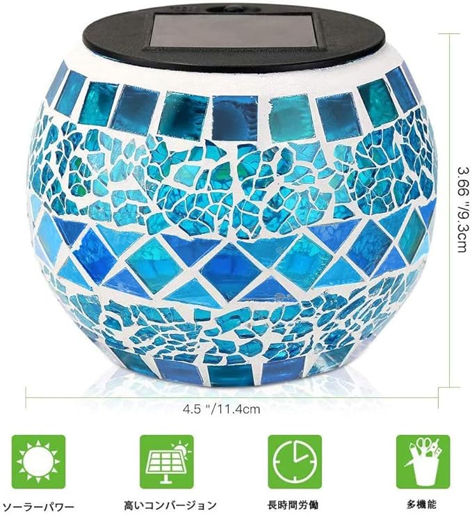 LEDGLEソーラーライト ガーデンライト ガラスランプ ソーラー充電式 イルミネーションライト モザイクガラスライト 夜間自動点灯 IP44防水 庭 ベランダ 玄関 テーブル ガーデン パーティー クリスマス 装飾用 プレゼントにも最適