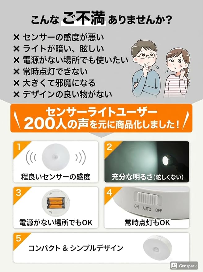 ✅人感センサーライト 室内用 (電池式 / 明暗センサー付き) 2個セットです。バリエーションは、「暖色」「白色」の2種類です。
