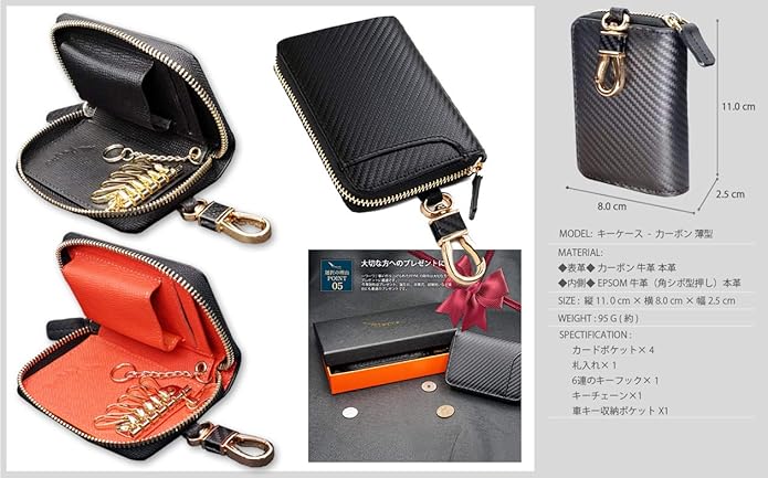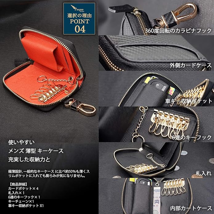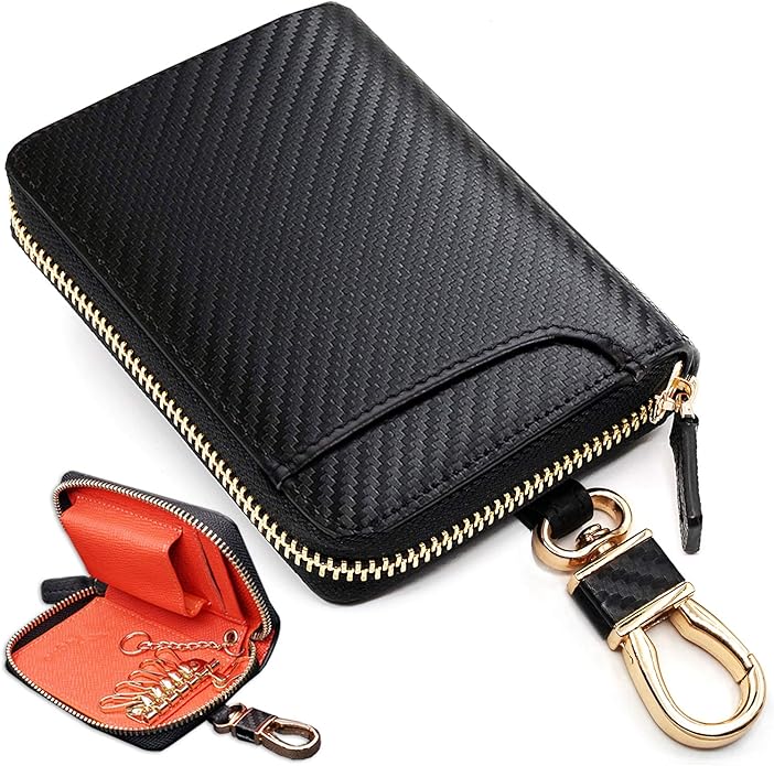 [PEYNE] キーケース メンズ 本革 スマートキーケース - カーボン カード 大容量 レザー メンズキーケース 02小銭入れ(表革: カーボン ブラック, 内側: 型押しカーフ ブラック/レッド)… | ryouhinshop