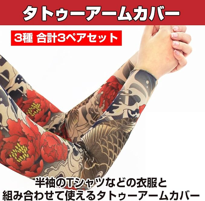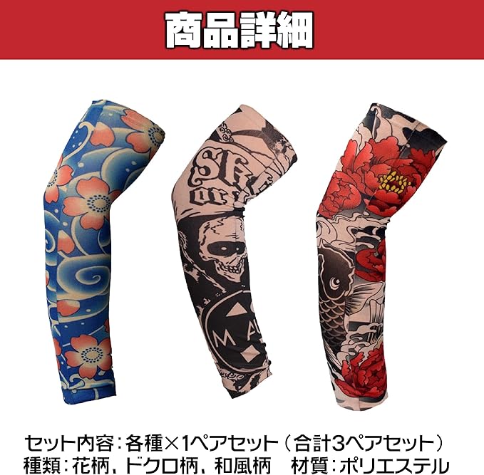 [Felimoa] タトゥーアームカバー 日焼け防止 紫外線対策 アウトドア 3種 合計3ペアセット | ryouhinshop
