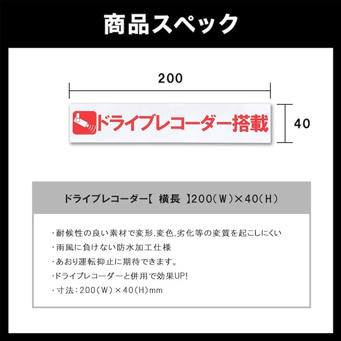 ドライブレコーダー ステッカー シール 日本製 外貼り 防水 耐候 200(W) 40(H) ドラレコ セキュリティ あおり運転 迷惑防止 (1枚)
