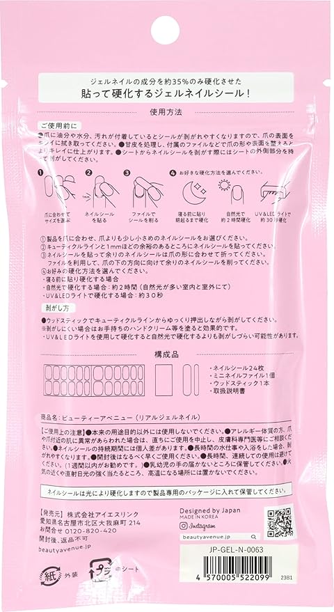 BEAUTYAVENUE(ビューティーアベニュー)ライトが要らない ジェルネイルシール ハンド用 24pcs (アップルデザイヤ)