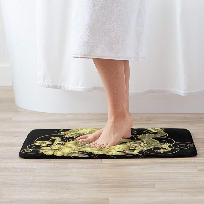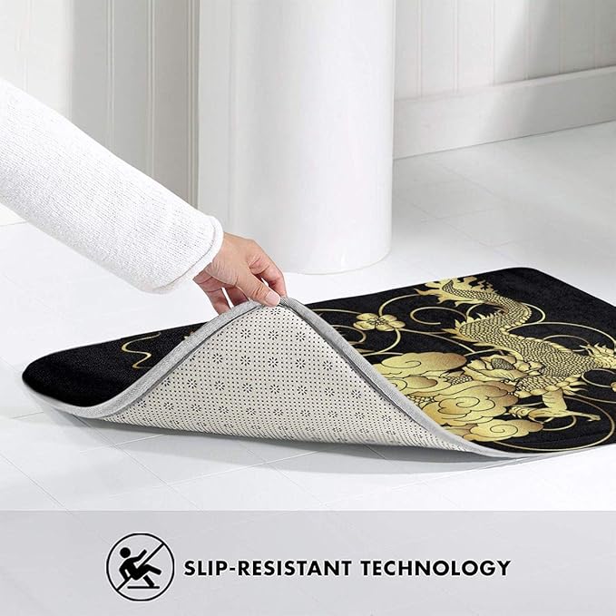 玄関マット 泥落としマット 金 龍 和風 伝統 おしゃれ 屋内屋外兼用 キッチンマット ドアマット 洗える 滑り止め付き 耐磨耗性 業務用 家庭用 (60 40cm) BOLACO