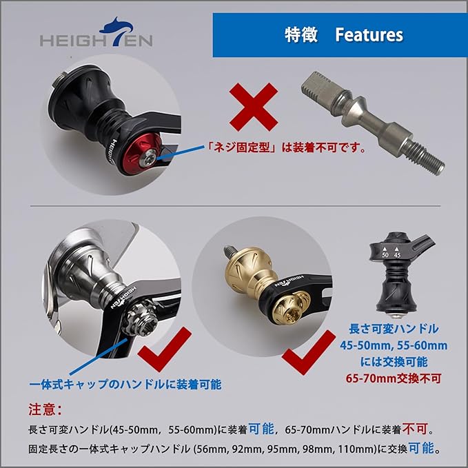 【特徴】 HEIGHTEN スピニングリール ハンドル 専用アブかルシア転換軸。