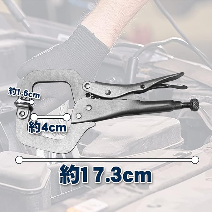 【セット内容】C形ロッキングプライヤー 4点 【サイズ(約)】全長17.3cm 口奥行4cm