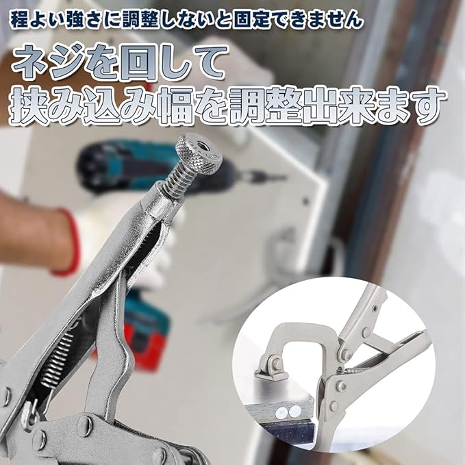 ロッキングプライヤー C型クランプ 固定工具 強固ロック ニッケルメッキ 調節可能 DIY 木工 4個セット