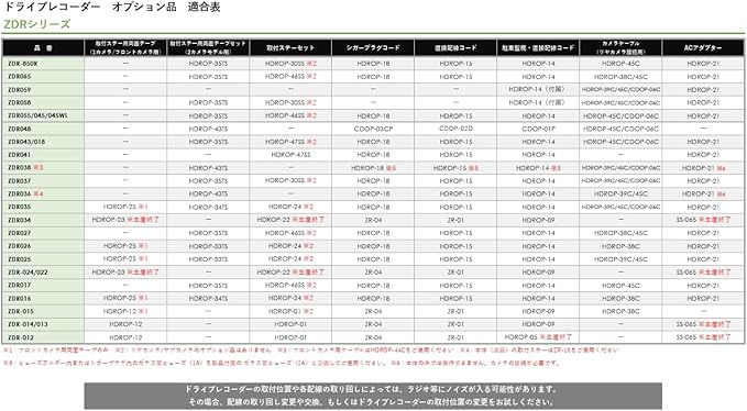 コムテック対応ドライブレコーダーの駐車監視機能を使用する際に必要なコード