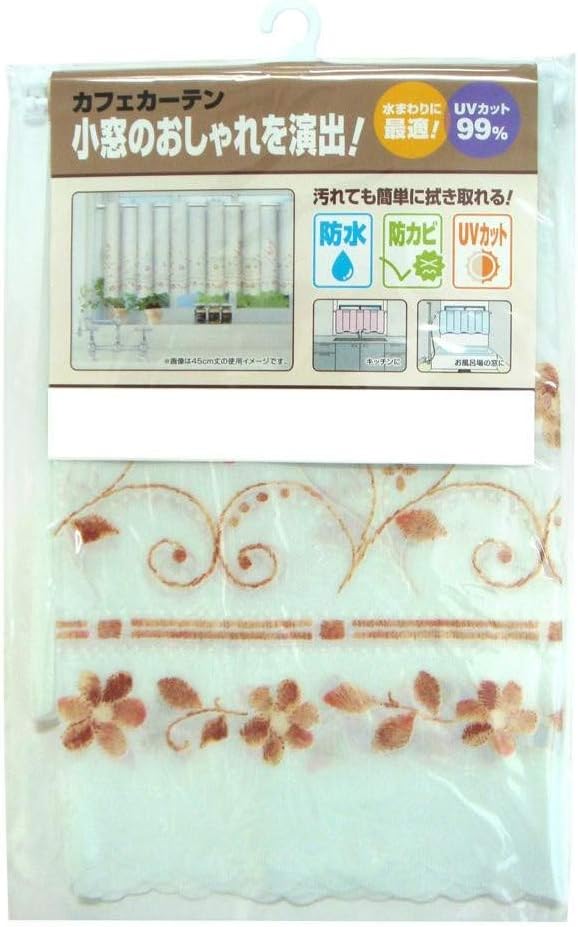 カフェカーテン UV99%カット 防水 防カビ 幅100 丈45cm ライトブラウン CFC-101