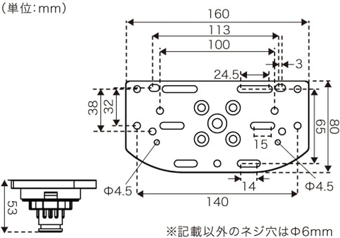 CFシリーズの魚探マウント(品番:CF-KP106)より穴加工が増え、幅が広くなりました。そのため、穴あけ加工をせずに取付可能な魚探が増えました。